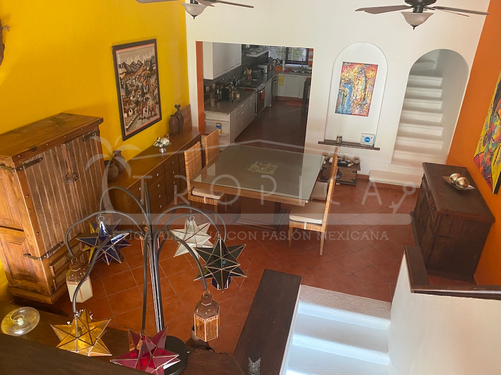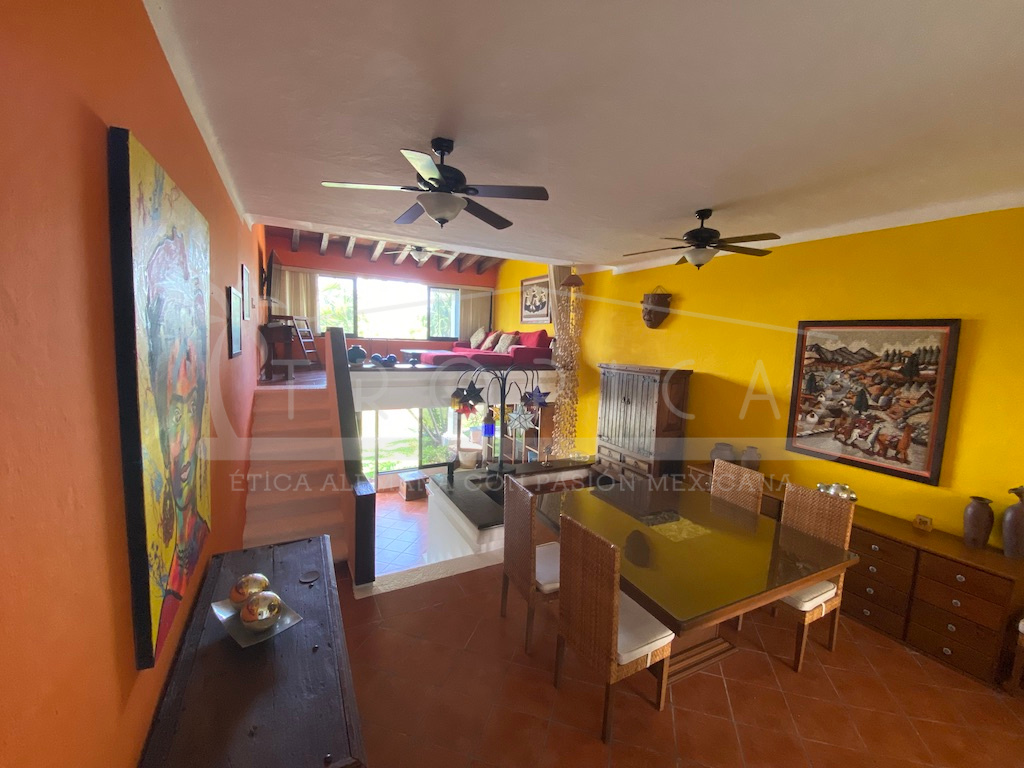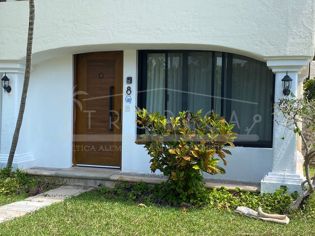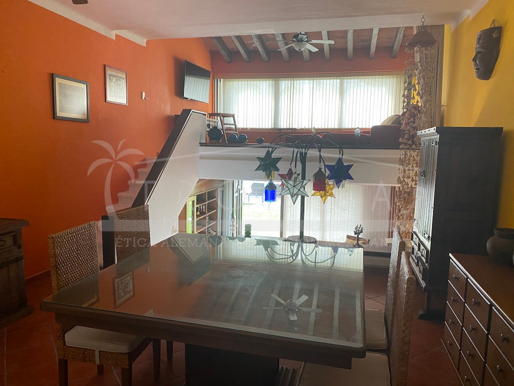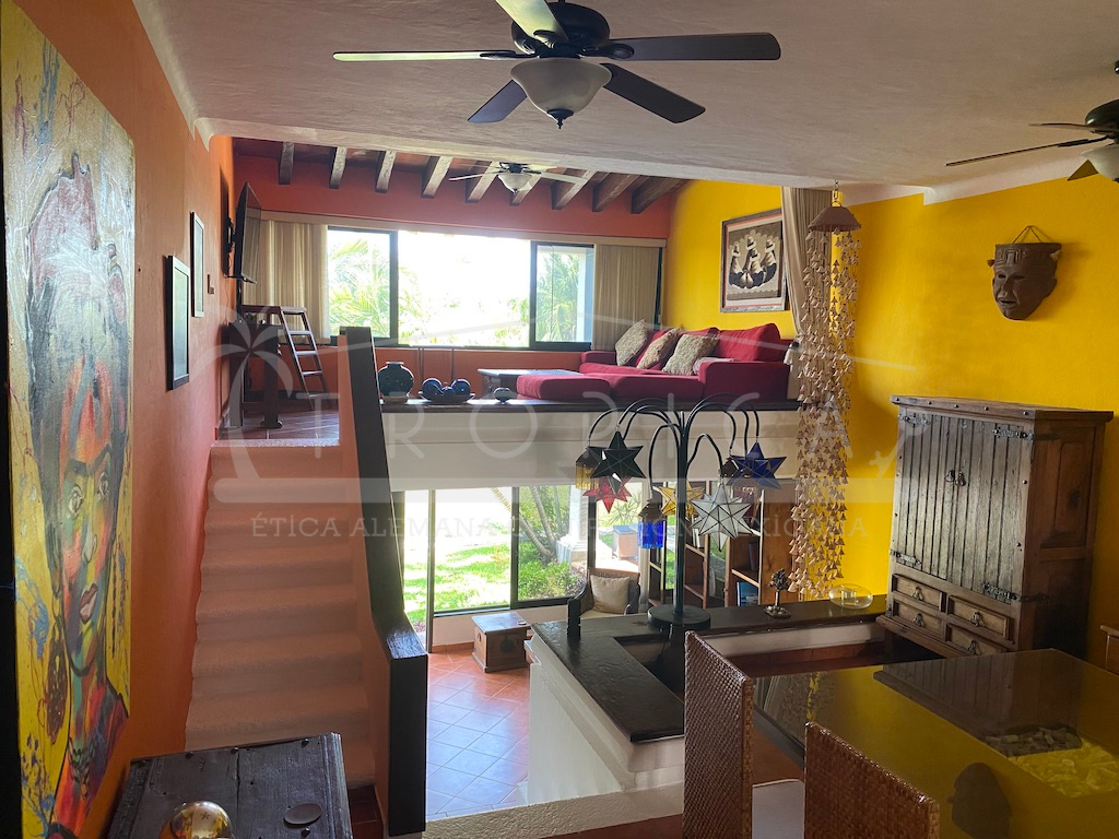 Casa en conjunto a 500 metros de distancia a la entrada de Playa Delfines en la Zona Hotelera de Cancún, en un pequeño conjunto con seguridad las 24 horas. Completamente amueblada contando con 2 recamaras, ante sala, mezanine, comedor y equipada con aires acondicionados y ventiladores de techo y decorada con gran gusto se presenta esta casa con carácter mexicano.