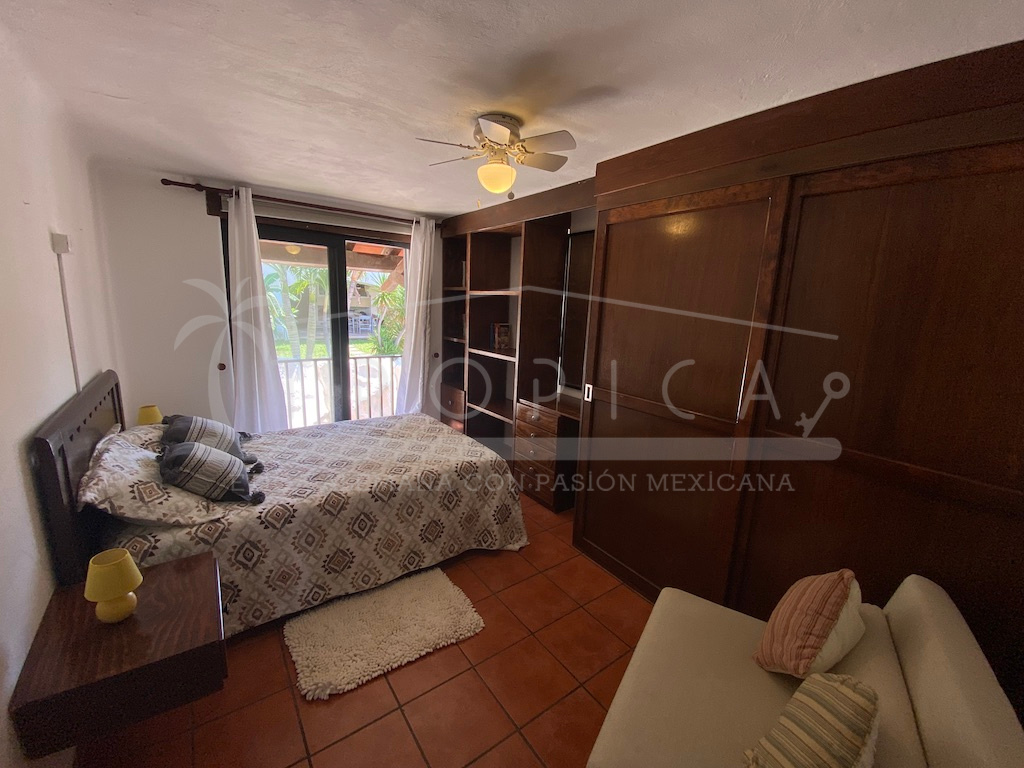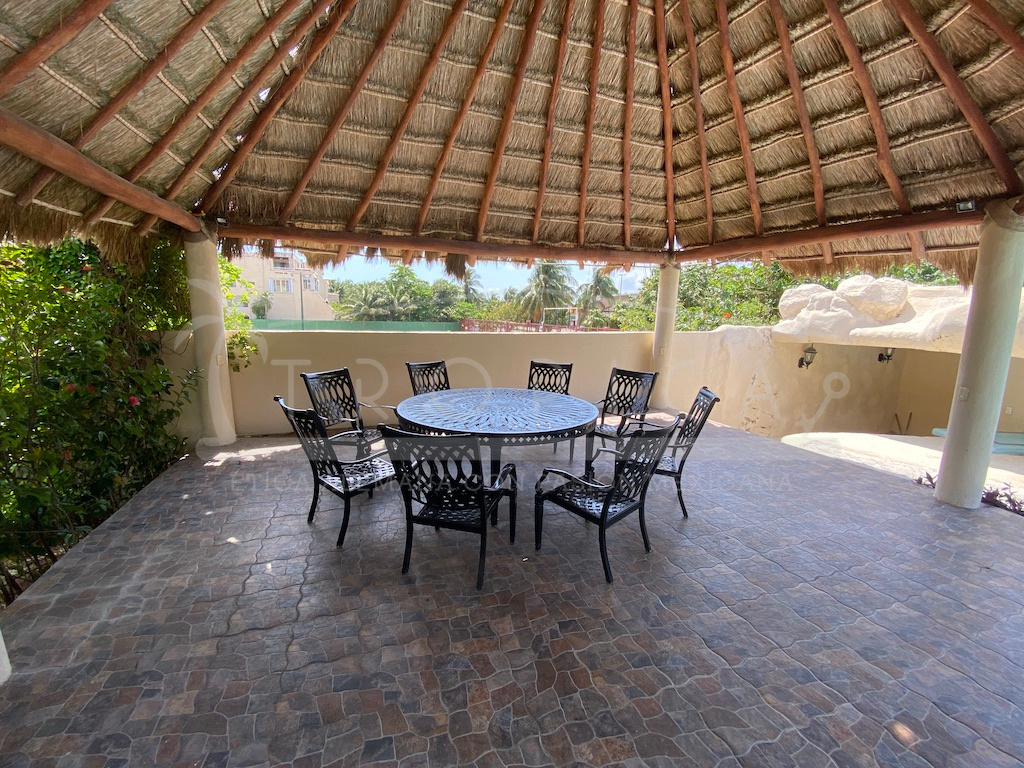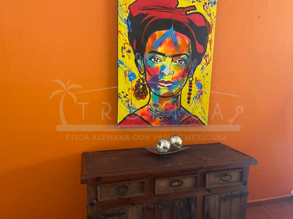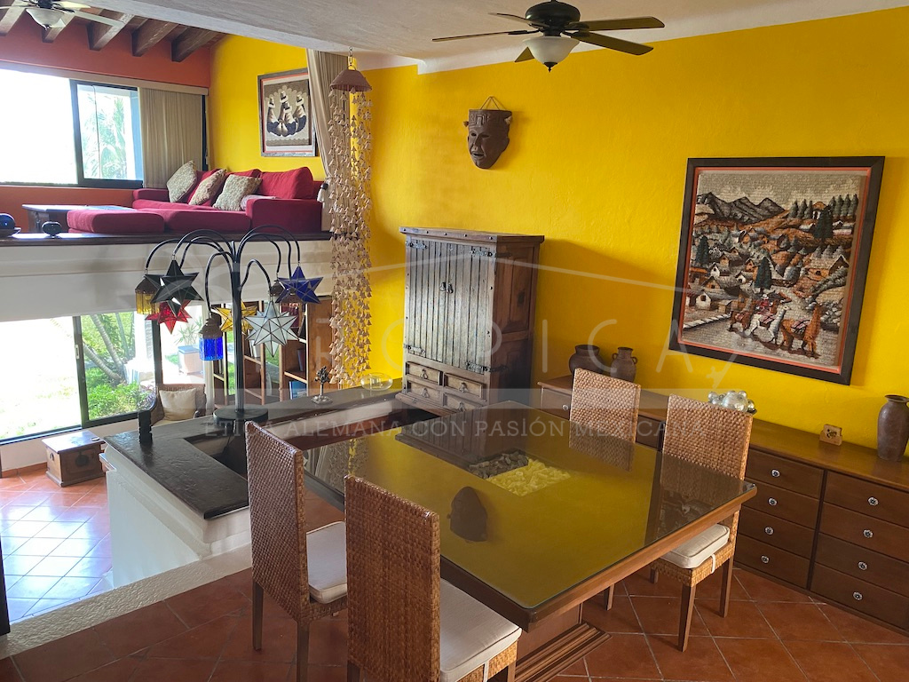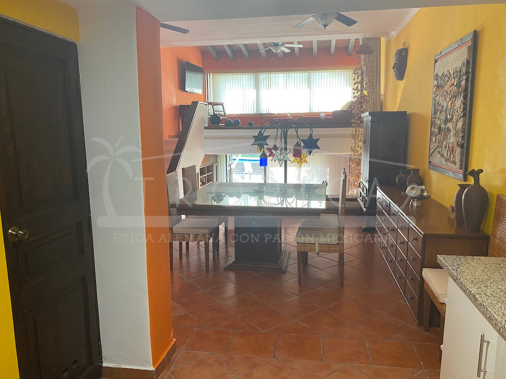 Casa en conjunto a 500 metros de distancia a la entrada de Playa Delfines en la Zona Hotelera de Cancún, en un pequeño conjunto con seguridad las 24 horas. Completamente amueblada contando con 2 recamaras, ante sala, mezanine, comedor y equipada con aires acondicionados y ventiladores de techo y decorada con gran gusto se presenta esta casa con carácter mexicano.