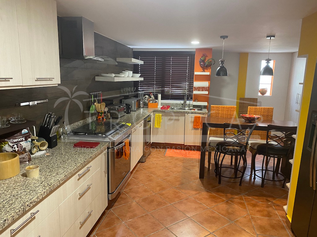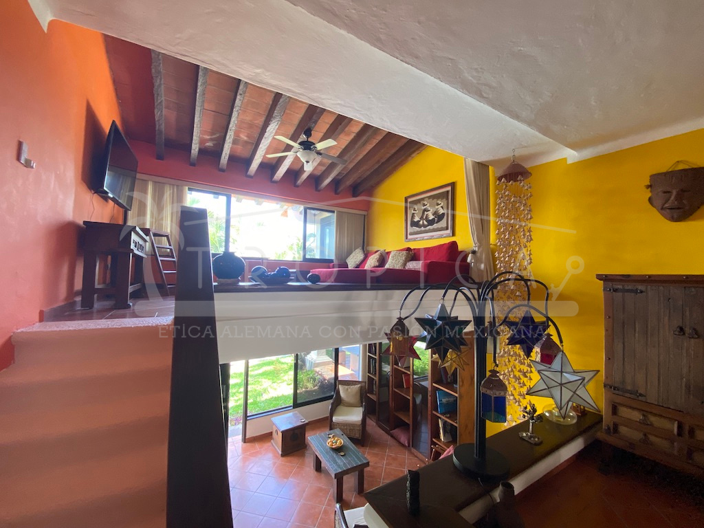 Un mezanine da un carácter muy especial al ambiente transmitiendo el sentir de apertura y amplitud a la vivienda. La cocina está totalmente equipada y cuenta con una salida a un área verde y hermoso. En la parte superior encontraras 2 recamaras con baños completos.