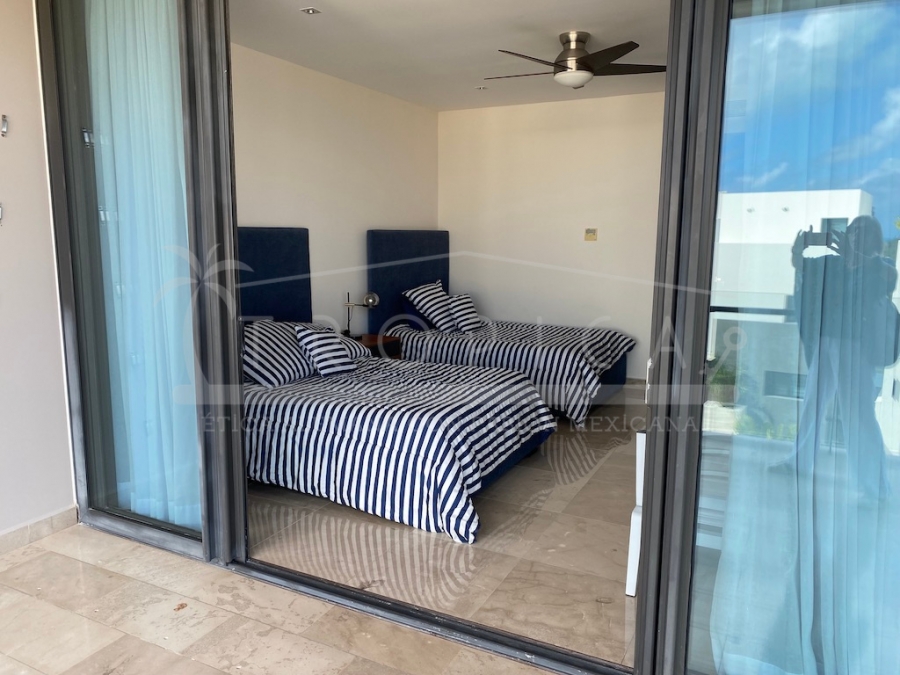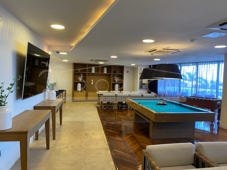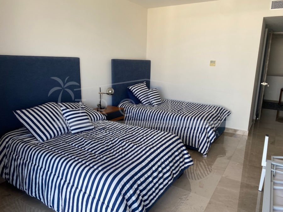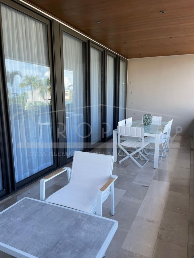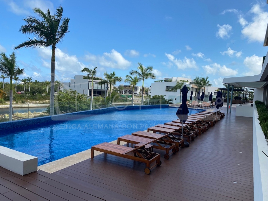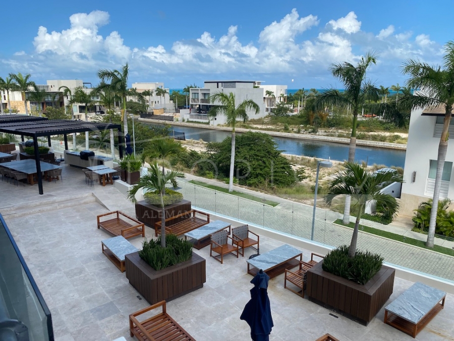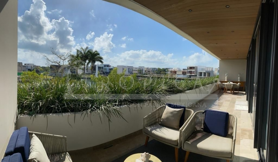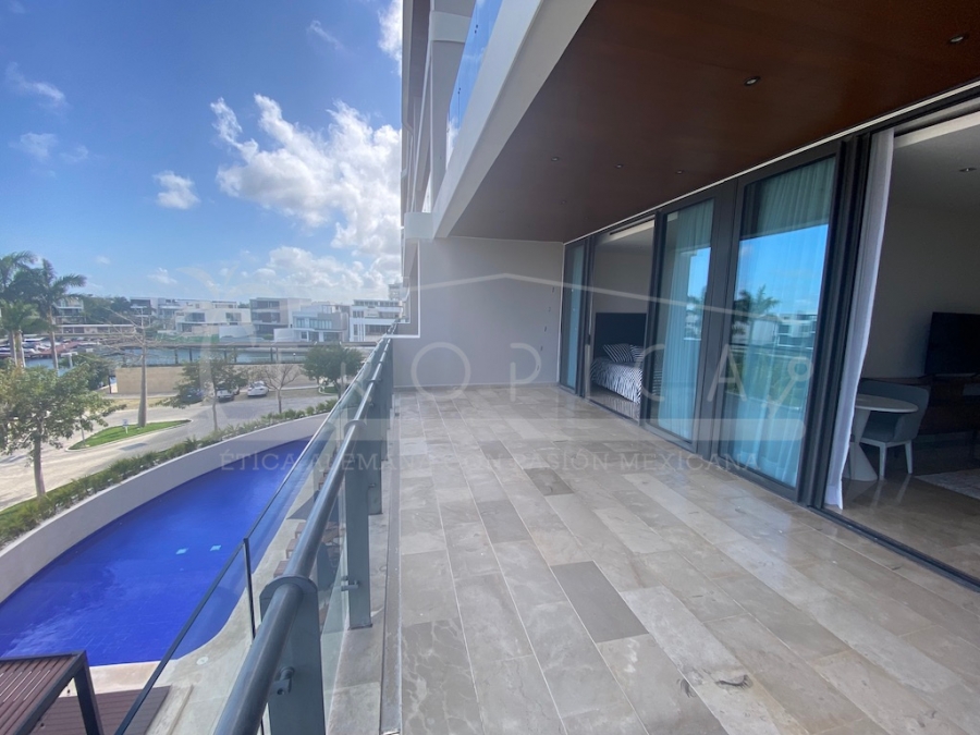 Este hermoso departamento está completamente amueblado y localizado en la torre H en un primer nivel. Un departamento de 237 m2 sobre 2 pisos contando con 3 amplias recamaras, sala, comedor, cuarto de servicio, ante sala y una amplia terraza con lindas vistas sobre el canal y el mar caribe.