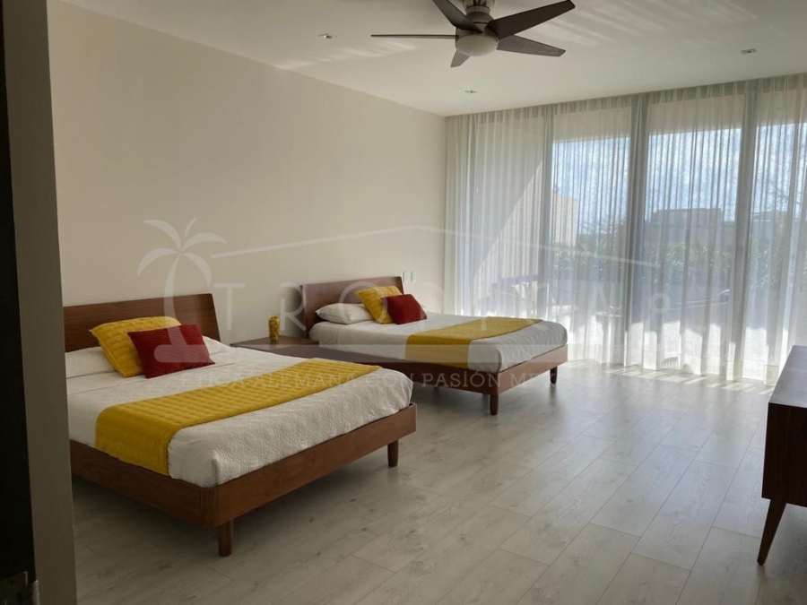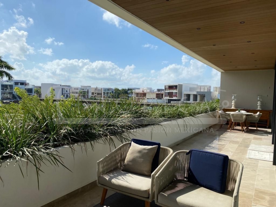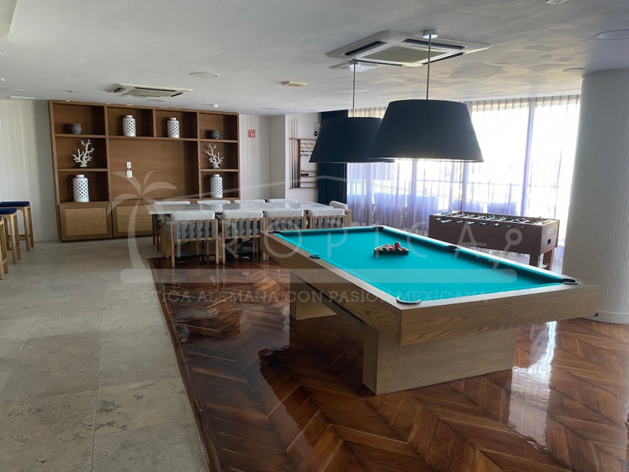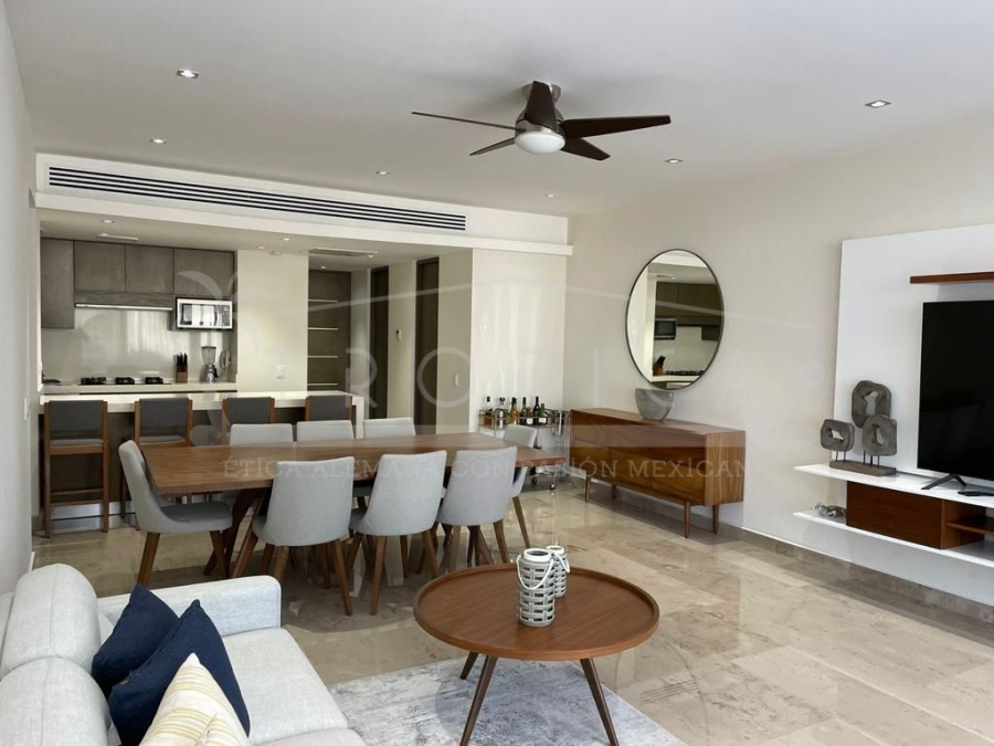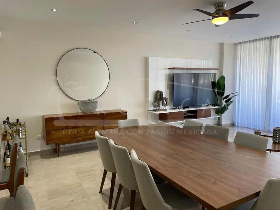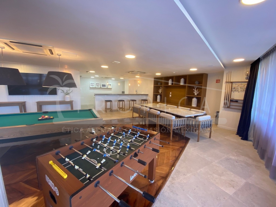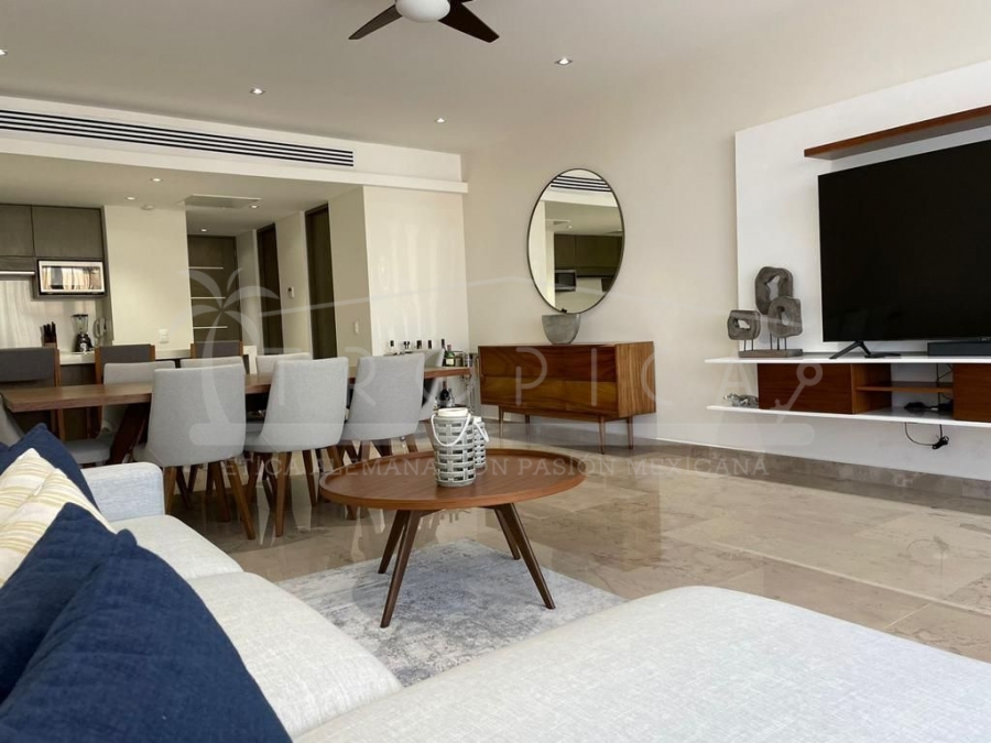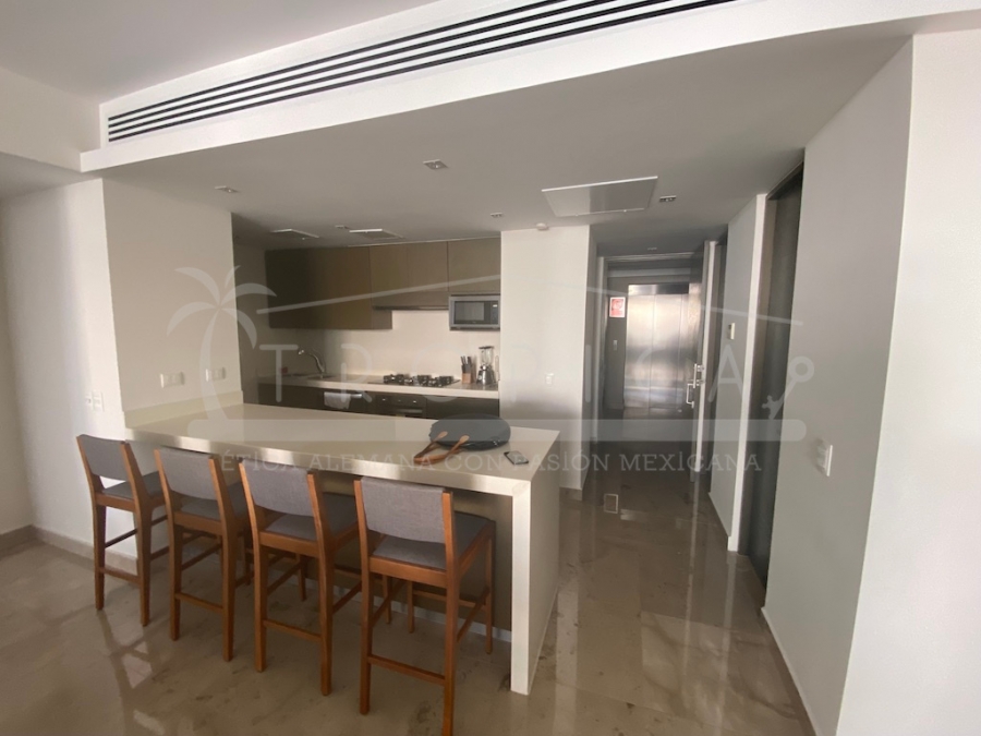 Este hermoso departamento está completamente amueblado y localizado en la torre H en un primer nivel. Un departamento de 237 m2 sobre 2 pisos contando con 3 amplias recamaras, sala, comedor, cuarto de servicio, ante sala y una amplia terraza con lindas vistas sobre el canal y el mar caribe.