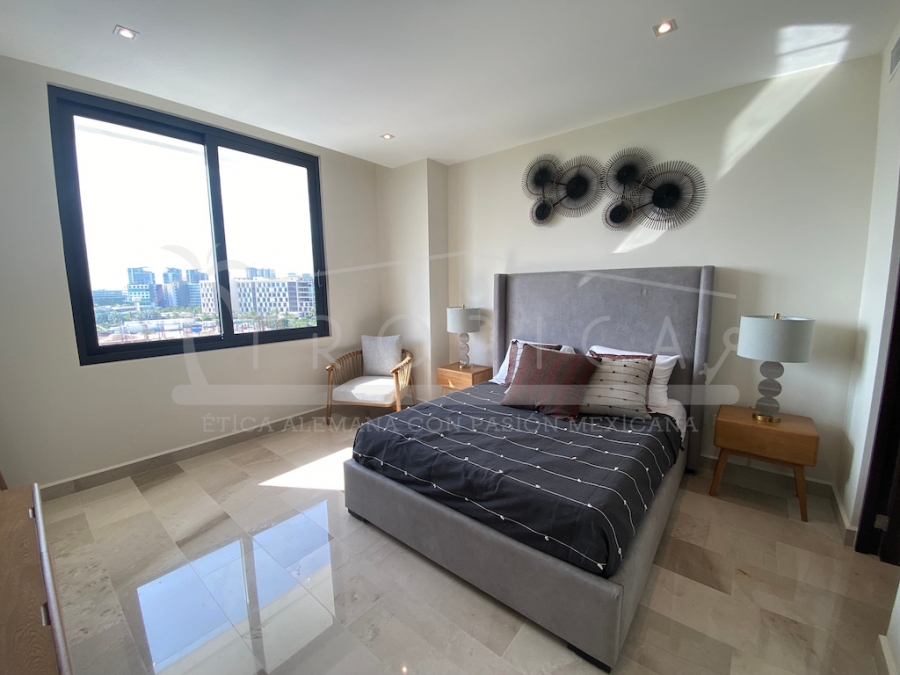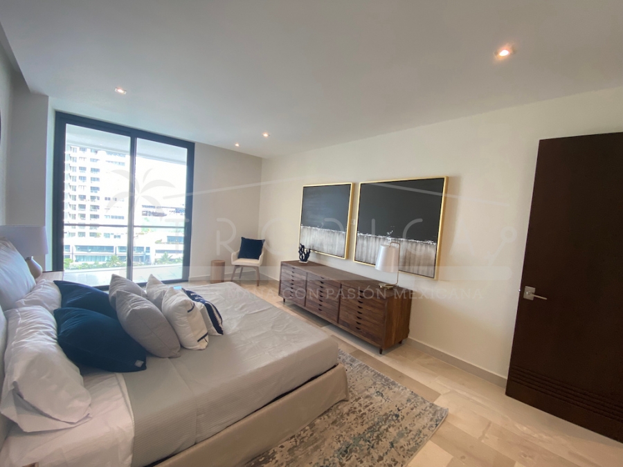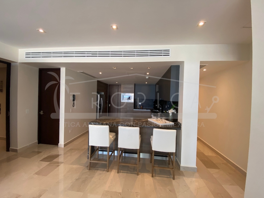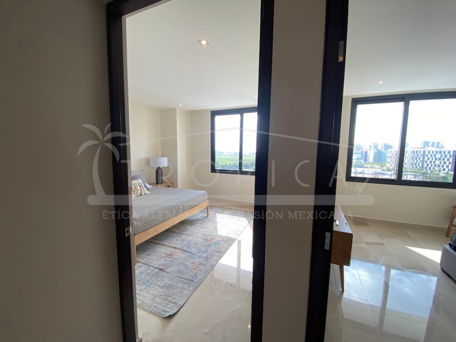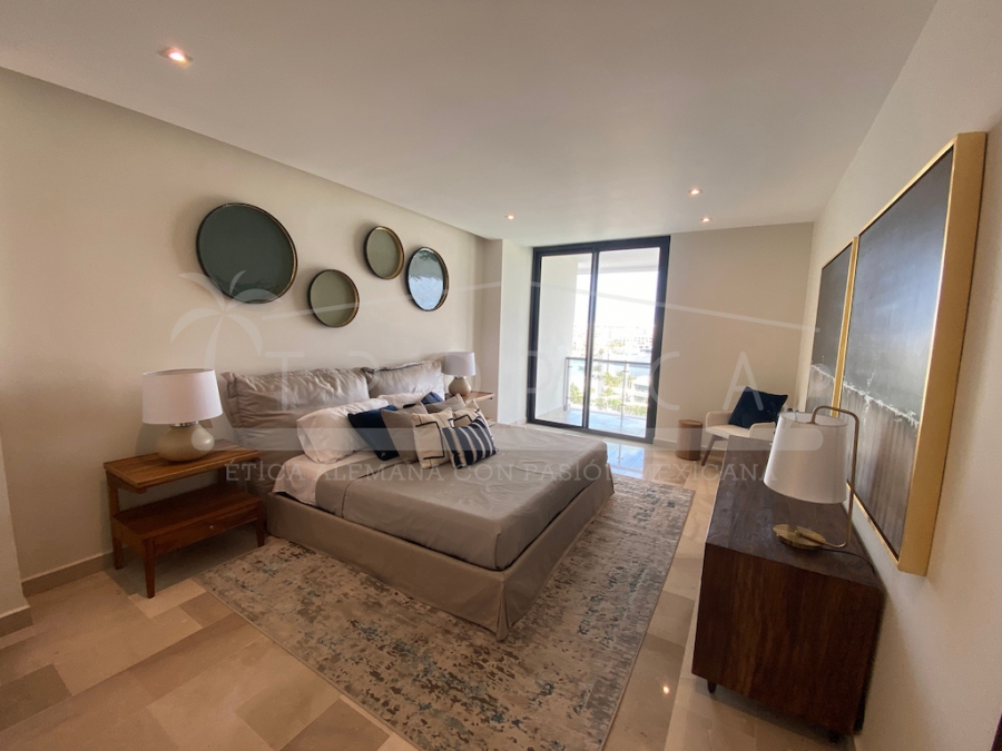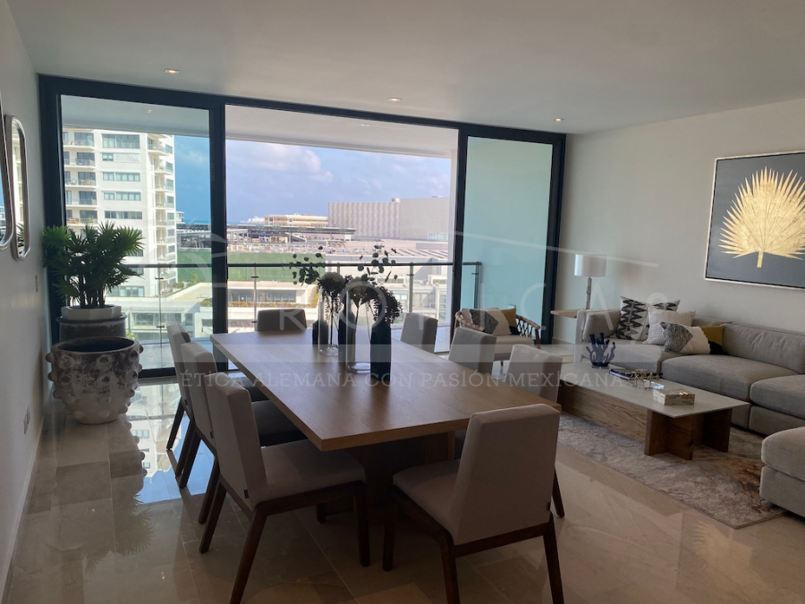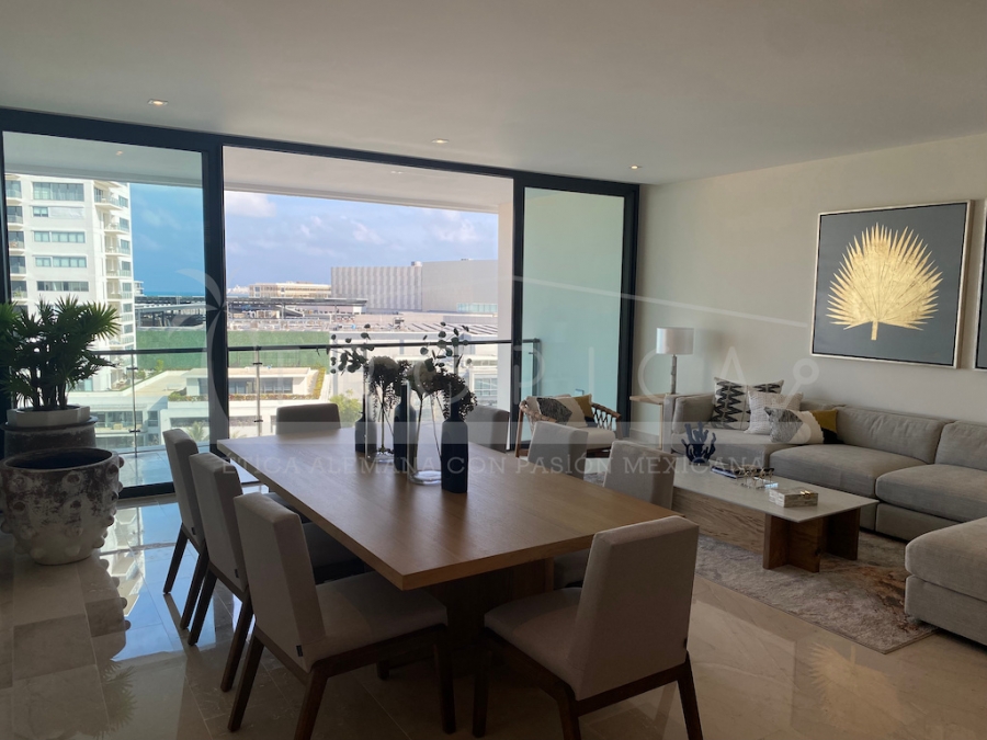 3 recamaras, sala, comedor, TV, cuarto de servicio y una espectacular terraza para gozar los ratos libres en la brisa de un piso 6 con vistas sobre el mar caribe, la marina y los canales de PUERTO CANCUN.