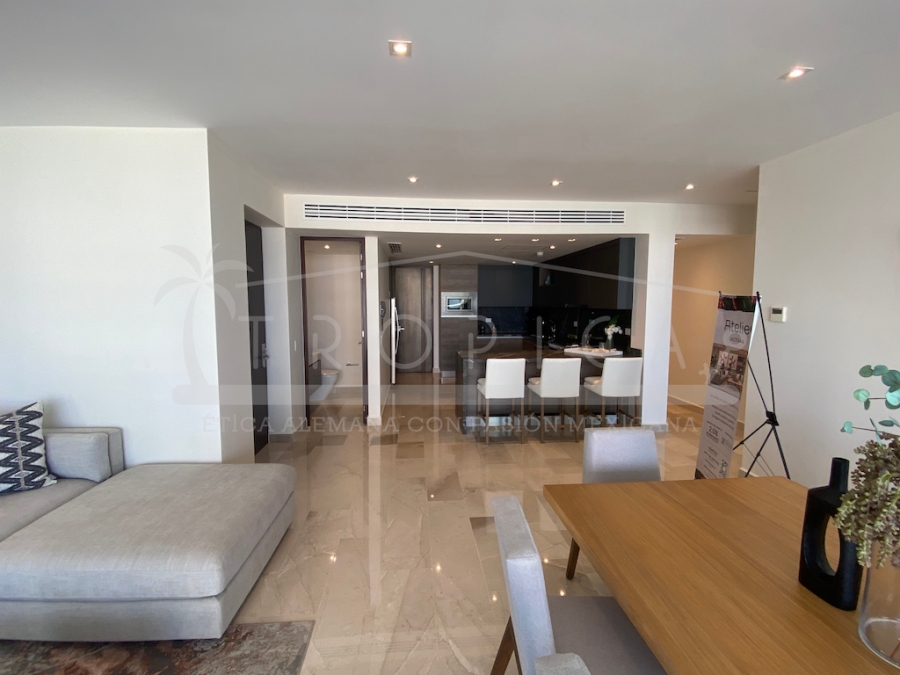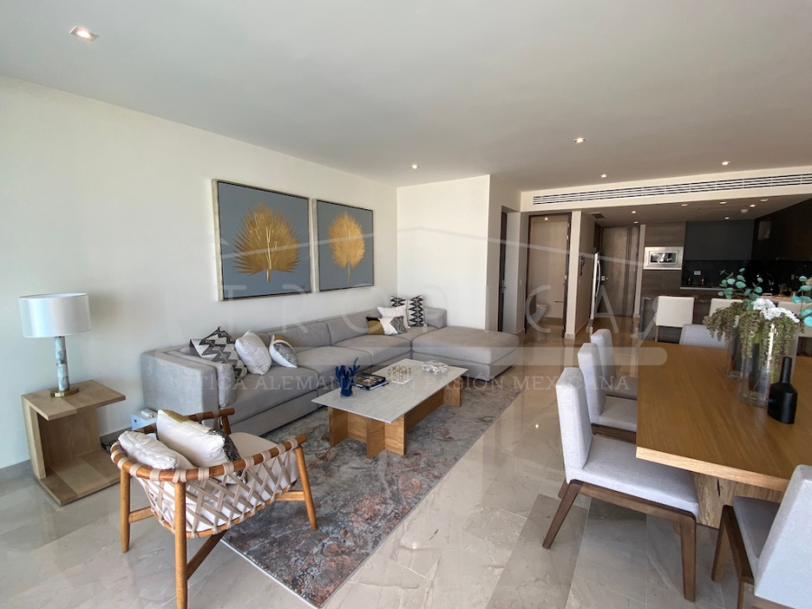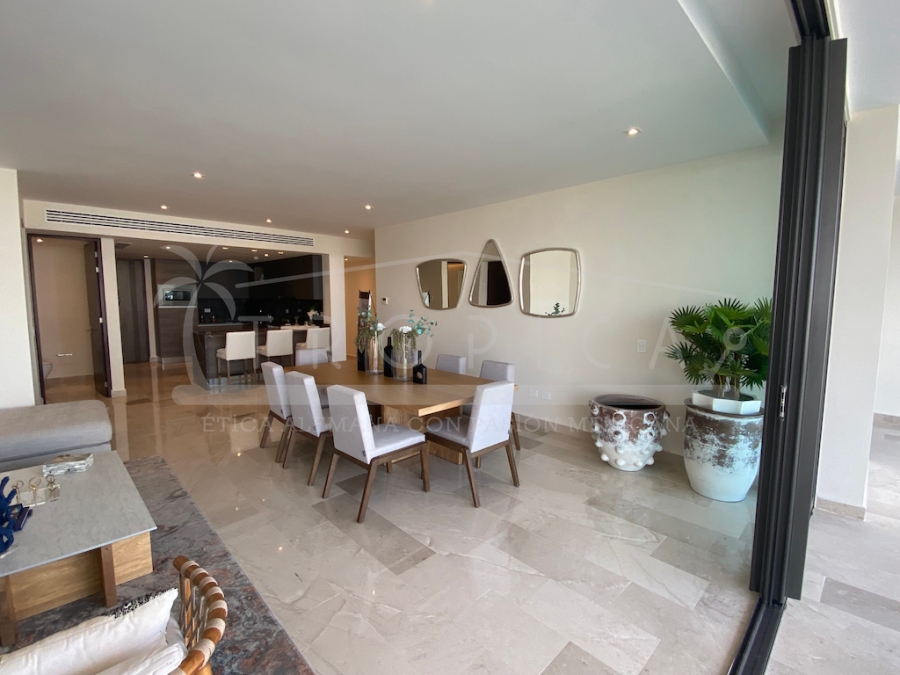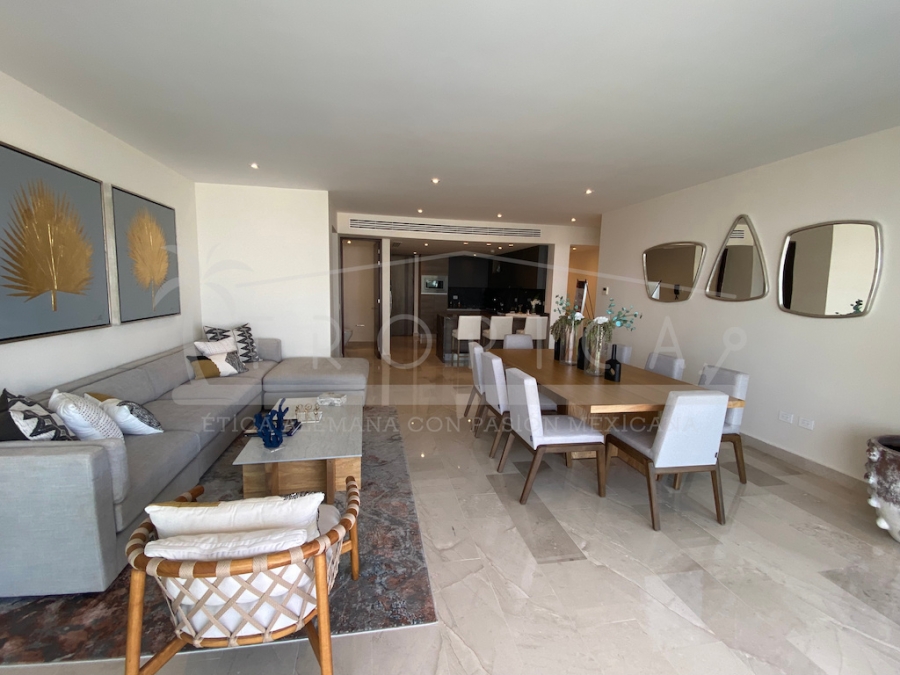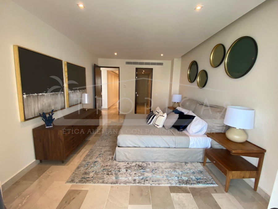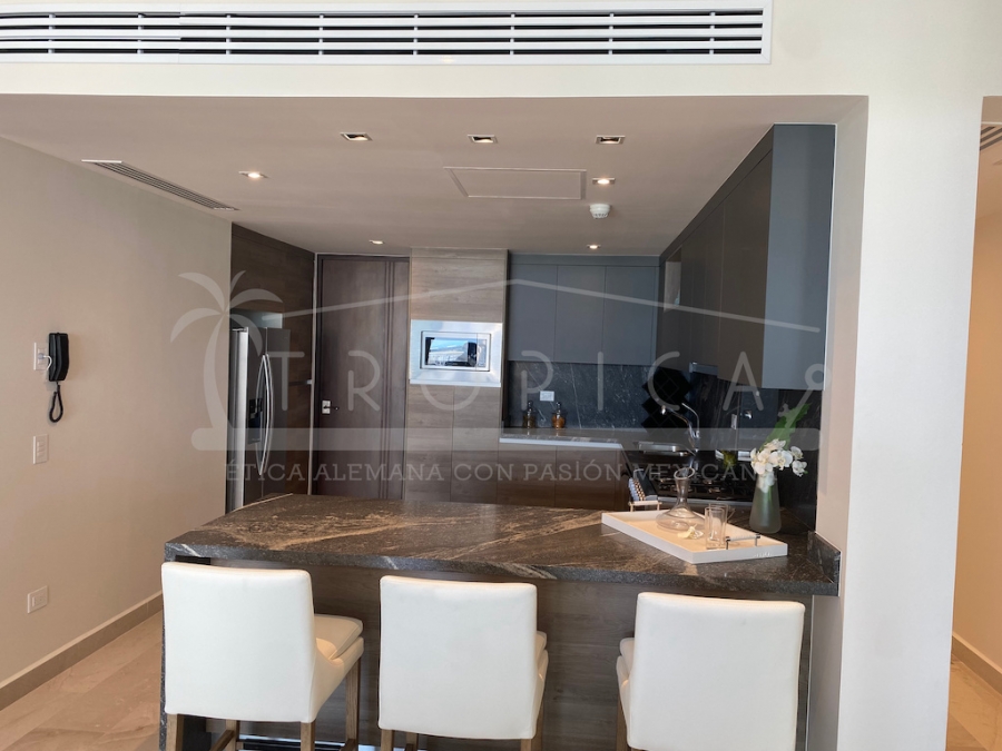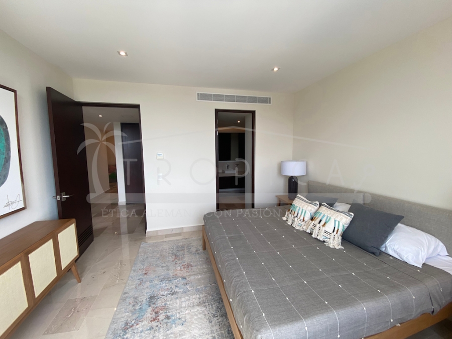3 recamaras, sala, comedor, TV, cuarto de servicio y una espectacular terraza para gozar los ratos libres en la brisa de un piso 6 con vistas sobre el mar caribe, la marina y los canales de PUERTO CANCUN.