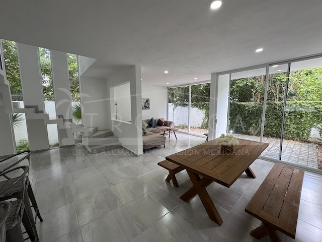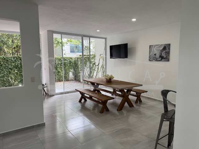 Se vende preciosa casa de 3 recámaras completamente amueblada en el exclusivo residencial Aldea Kiin, Puerto Morelos, con 170 metros cuadrados de construcción que combinan comodidad y diseño para una vida plena. Esta residencia se encuentra rodeada de naturaleza, tranquilidad, y con amenidades de primer nivel: Kids Club para los más pequeños, dos albercas albergan espacios ideales de esparcimiento, gimnasio totalmente equipado, palapa de eventos para convivios bajo techo, extensas áreas verdes, calles estampadas, cableado subterráneo para mantener la estética y seguridad del entorno. La flora y fauna son divinas, contribuyendo a un ambiente natural y apacible, lejos del ruido, cerca de la tranquilidad del mar Caribe.