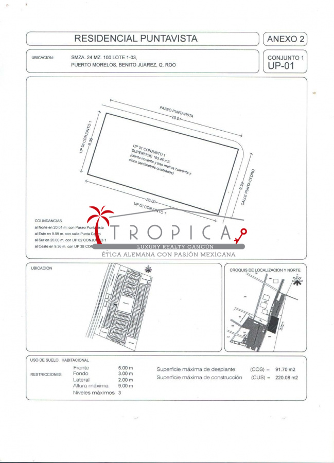 Punta Vista pertenece al mágico pueblo de Puerto Morelos y está localizado sobre la carretera 307 Cancún – Tulum. El residencial destaca especialmente comparado con otros residenciales en el área por su cercanía y alcance estratégico a super mercados, bancos, el pueblo y otros.