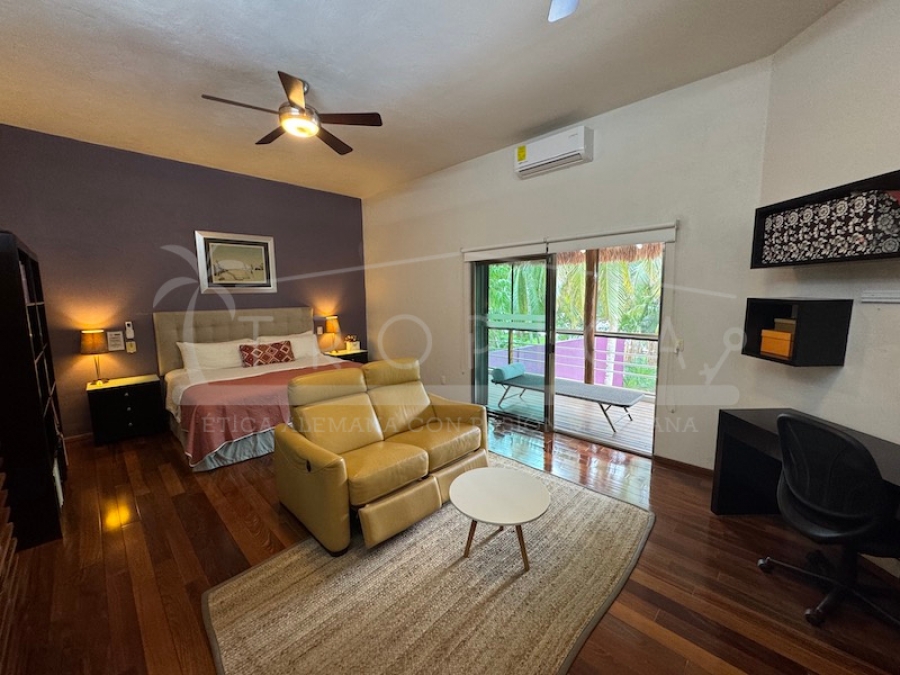 La residencia principal cuenta con tres recámaras impecablemente decoradas y con baño completo, amplios espacios comunes con pisos de madera de camaru y una cocina equipada con electrodomésticos y acabados de alta calidad. Cada rincón refleja elegancia y confort, ideal para quienes buscan mudarse de inmediato y disfrutar de un entorno paradisíaco asegurando comodidad para todos.