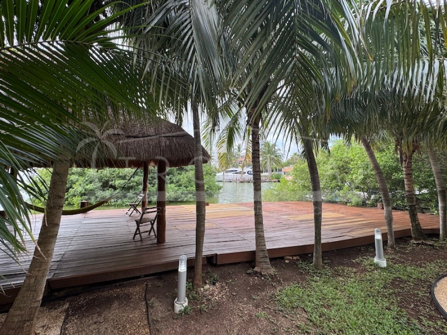 Y si fuera poco el jardín se complementa con un amplio muelle privado de 18 x 4.5 metros con palapa que te invita a explorar la laguna o disfrutar de los atardeceres caribeños únicos desde tu hamaca o columbio de madera.
